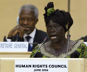 In awarding Maathai the Nobel peace prize in 2004, the Nobel committee said that her "unique forms of action have contributed to drawing attention to political oppression nationally and internationally".Maathai served as an assistant minister in President Mwai Kibaki's government from 2003 to 2005, but her refusal to keep silent on some issues saw her politically sidelined, and she lost her seat after a single term. Her work schedule remained hectic, however, and she wrote several books and travelled widely."Professor Maathai's departure is untimely and a very great loss to all who knew her as a mother, relative, co-worker, colleague, role model, and heroine; or who admired her determination to make the world a more peaceful, healthier, and better place, Maathai is survived by her three children and a granddaughter.