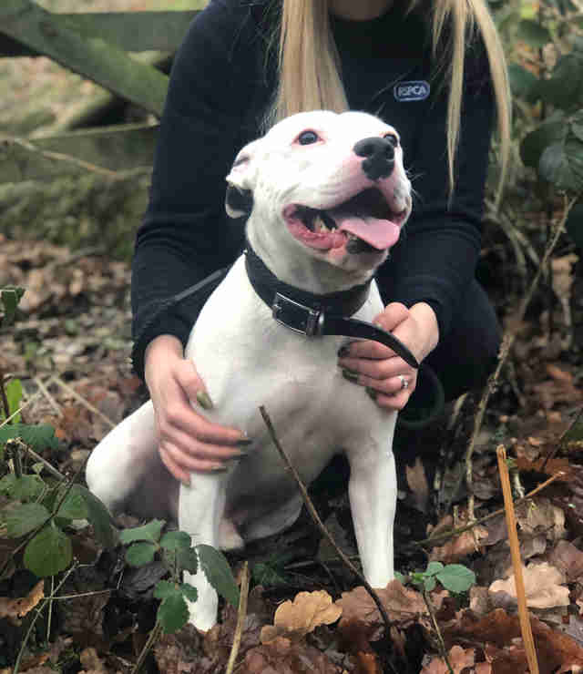 Just a few weeks ago, this pup was alone in the world. Dumped on the streets of England with only his dog bed, Snoop the Staffordshire terrier went viral after a surveillance camera captured heartbreaking footage of him desperately chasing his owner’s car while being abandoned.