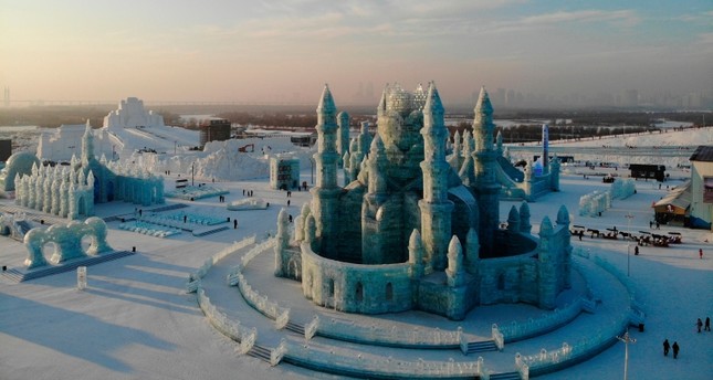 Every winter, millions of tourists flock to Harbin a city in the northeast corner of China o stand in temperatures nearing -40 degrees Fahrenheit and look at giant blocks of ice. Of. Donning fur coats and parkas over their dresses and suits, the couples pose for pictures after exchanging rings, then collectively cut a massive frozen wedding cake.