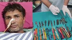 Officials said the Hapur-based man had been struggling with substance abuse and had been admitted to a de-addiction centre in Ghaziabad about a month ago. But being left at a de-addiction centre made him furious, and, in anger, he had been swallowing these everyday objects since then, officials said. Speaking to reporters, the man admitted that he would take spoons from the de-addiction centre.